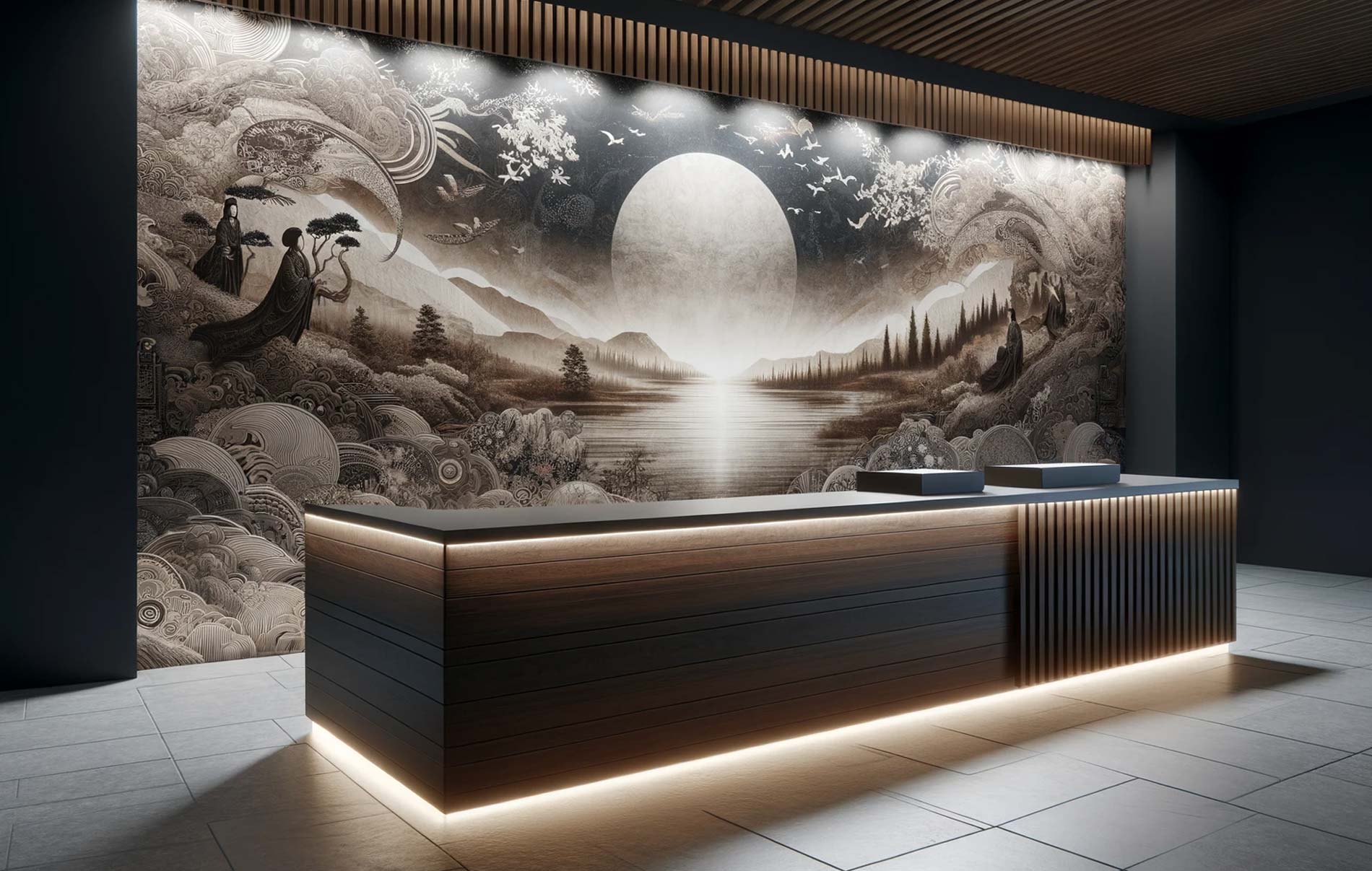 Tailored to Product Categories: Business Wall Murals are fully customizable, allowing you to tailor them to specific product categories or store sections. Different product lines and departments have unique themes and aesthetics, and these murals can be adapted to perfectly complement them. Whether you want to create a luxurious ambiance for high-end products, a playful atmosphere for children's items, or a serene backdrop for wellness products, these murals can be designed to align seamlessly with your product offerings. Customization ensures that your store's decor enhances the shopping experience and reinforces the appeal of each product category.