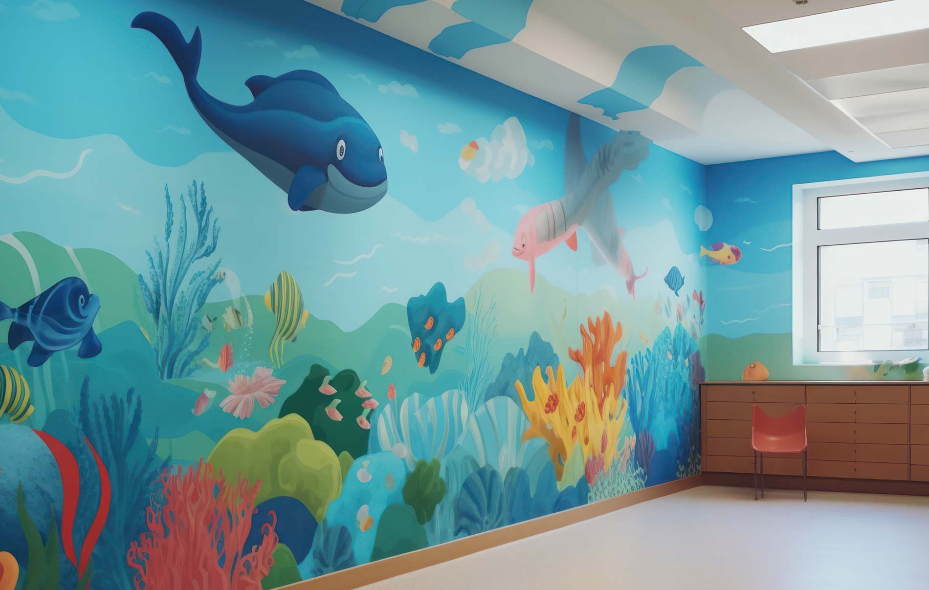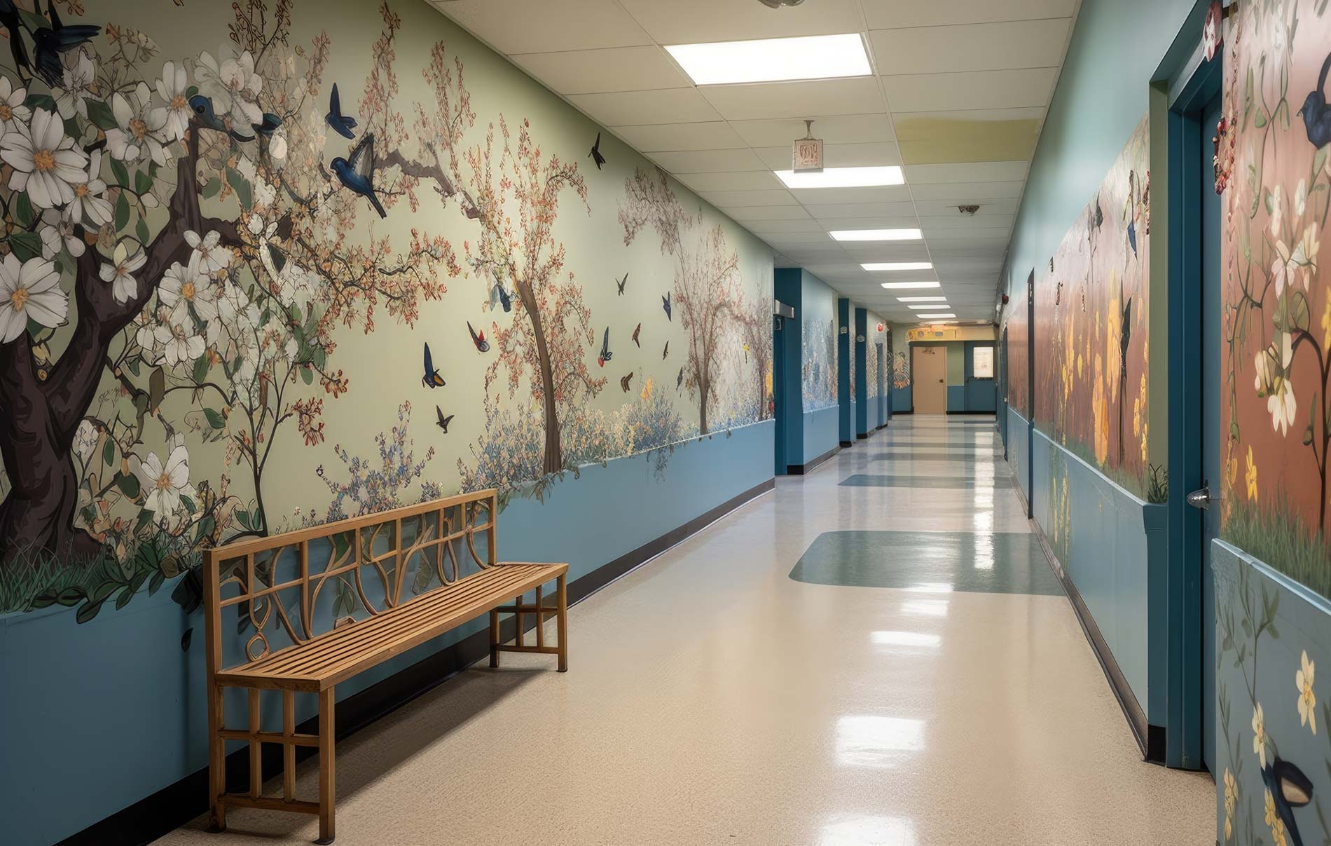 Inspire Learning and Creativity: Business Wall Murals are a powerful source of inspiration within educational spaces. These murals can feature educational themes, historical figures, scientific illustrations, or artistic masterpieces that spark curiosity and creativity among students. An inspiring environment fosters a love for learning, encourages critical thinking, and enhances the overall educational experience. Students and educators alike benefit from the positive atmosphere created by these murals, resulting in improved focus and academic performance.
